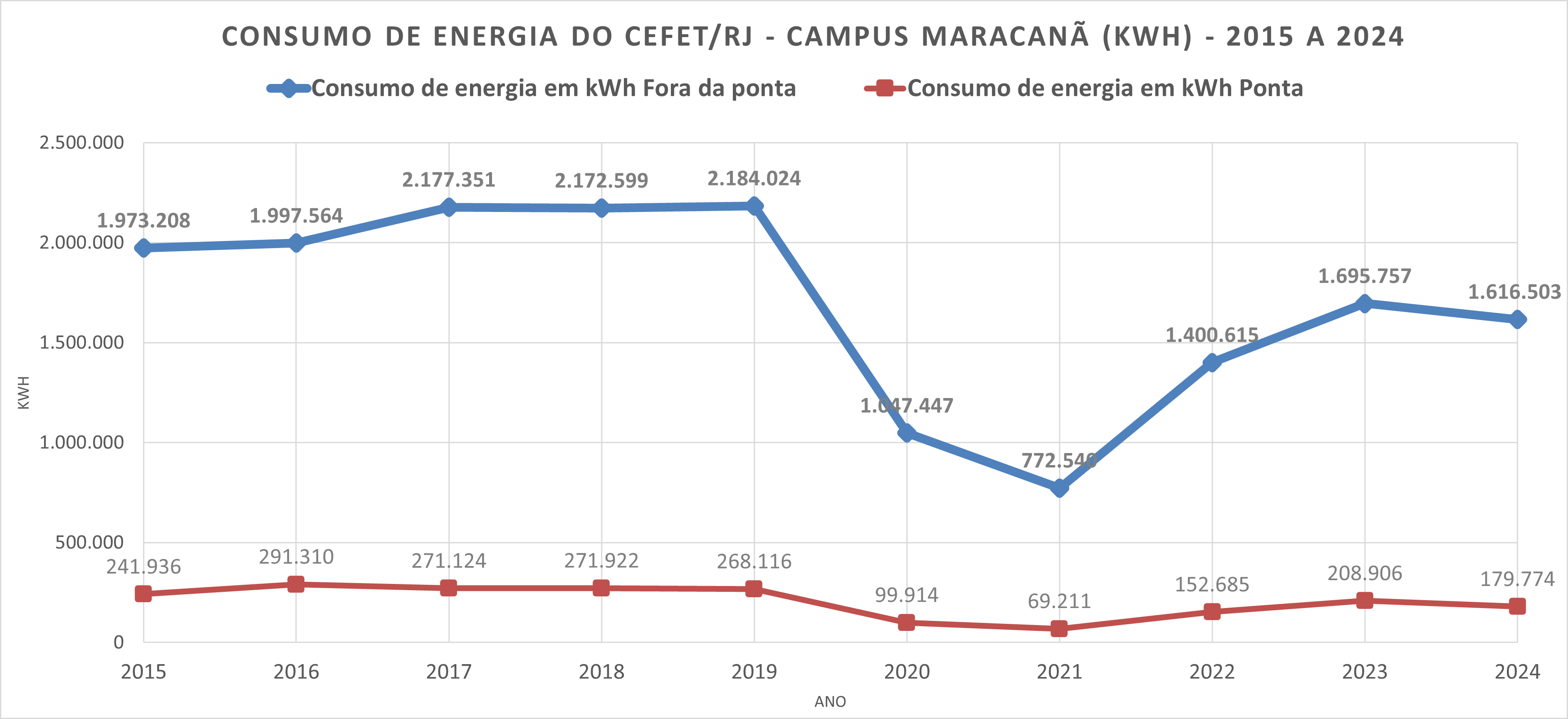 ACOMPANHAMENTO DO CONSUMO ANUAL DE ENERGIA, EM kWh, NO CAMPUS MARACANÃ DURANTE O PERÍODO DE 2015 a 2024.