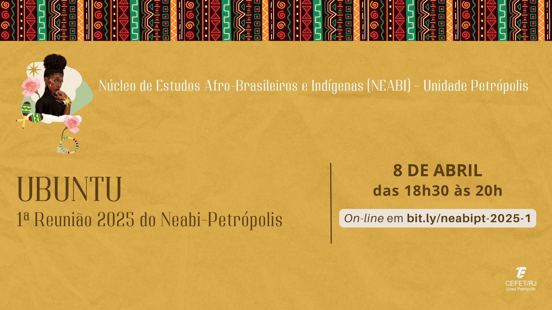 O Núcleo de Estudos Afro-Brasileiros e Indígenas (Neabi) do Cefet/RJ Petrópolis promove a sua 1ª reunião ordinária do ano no próximo dia 8 de abril, em formato remoto. Confira as informações sobre o evento: