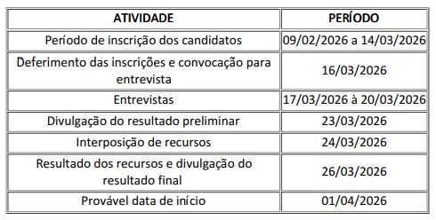 Período de inscrições: 09 de fevereiro à 14 de março de 2026