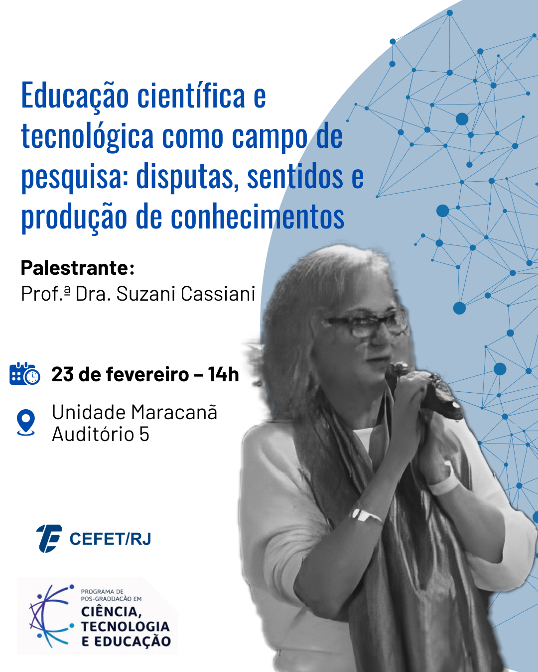 Nos dias 23 e 24 de fevereiro, o Programa de Pós-Graduação em Ciência, Tecnologia e Educação (PPCTE) vai promover a Semana de Acolhimento, para dar as boas-vindas aos estudantes ingressantes no programa. Na abertura, será realizada a aula inaugural “Educação científica e tecnológica como campo de pesquisa: disputas, sentidos e produção de conhecimentos”, ministrada pela professora Suzani Cassiani, do Programa de Pós-Graduação em Educação Científica e Tecnológica, da Universidade Federal de Santa Catarina (UFSC). O evento acontecerá no Auditório 5 da Unidade Maracanã, às 14h, e é aberto à comunidade. Não há necessidade de realizar inscrição.