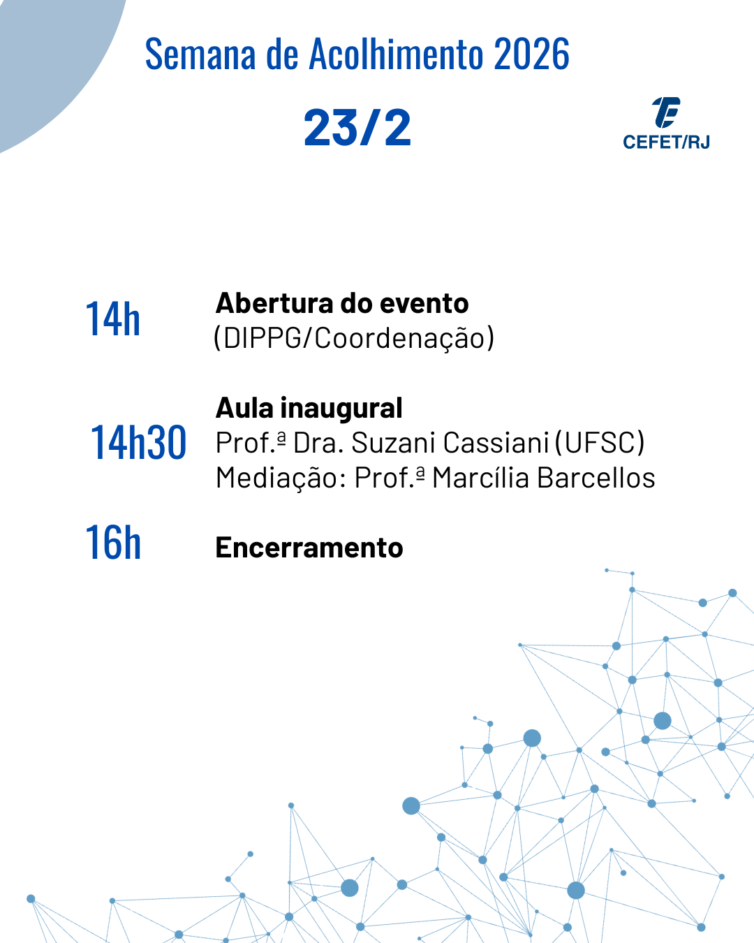 De acordo com Taís dos Santos, coordenadora adjunta do PPCTE, a palestra abordará as investigações sobre a educação científica e tecnológica. Além da aula inaugural, a Semana de Acolhimento terá a apresentação do curso e dos professores do programa e uma visita guiada pelas dependências da Unidade Maracanã.