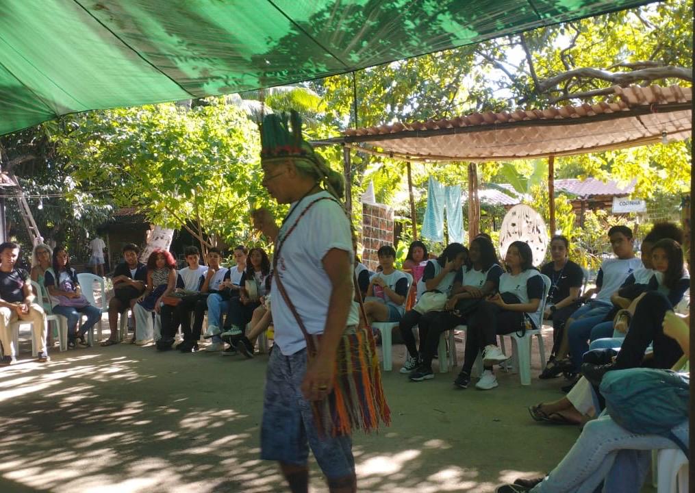 Durante a visita, os estudantes foram recebidos pelo líder indígena cacique José Urutau Guajajara e por outros integrantes da comunidade, incluindo crianças e adultos. No local, conheceram a história da Aldeia e ouviram relatos sobre a luta dos povos indígenas pelo reconhecimento de seus territórios e de sua cultura.