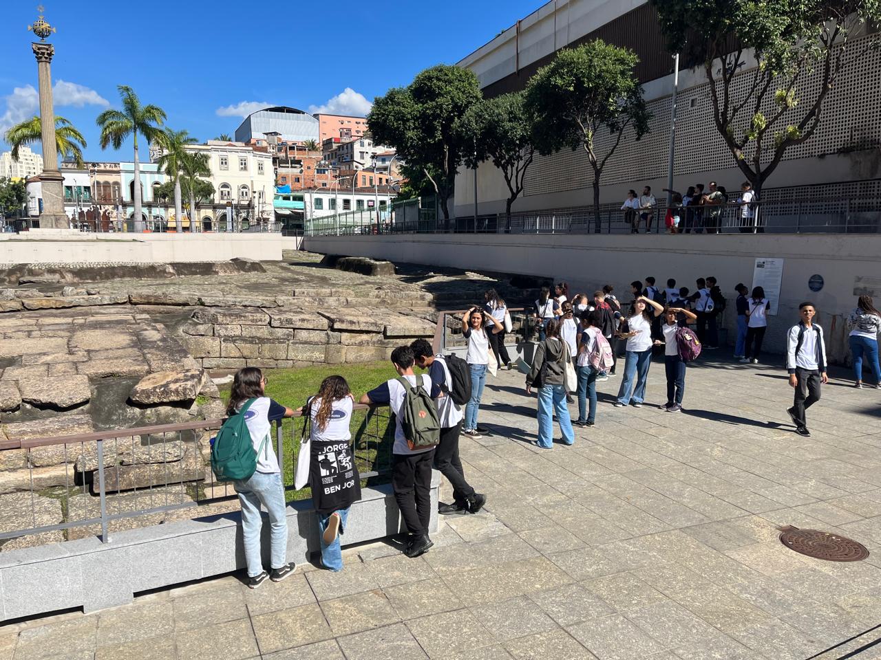 A atividade foi concluída com visitas ao Instituto dos Pretos Novos (IPN) e ao Museu da História e da Cultura Afro-Brasileira (MUHCAB). No IPN, os alunos conheceram o espaço que funcionou como cemitério informal de escravizados e hoje se dedica à pesquisa e à preservação da memória das vítimas do tráfico negreiro.
