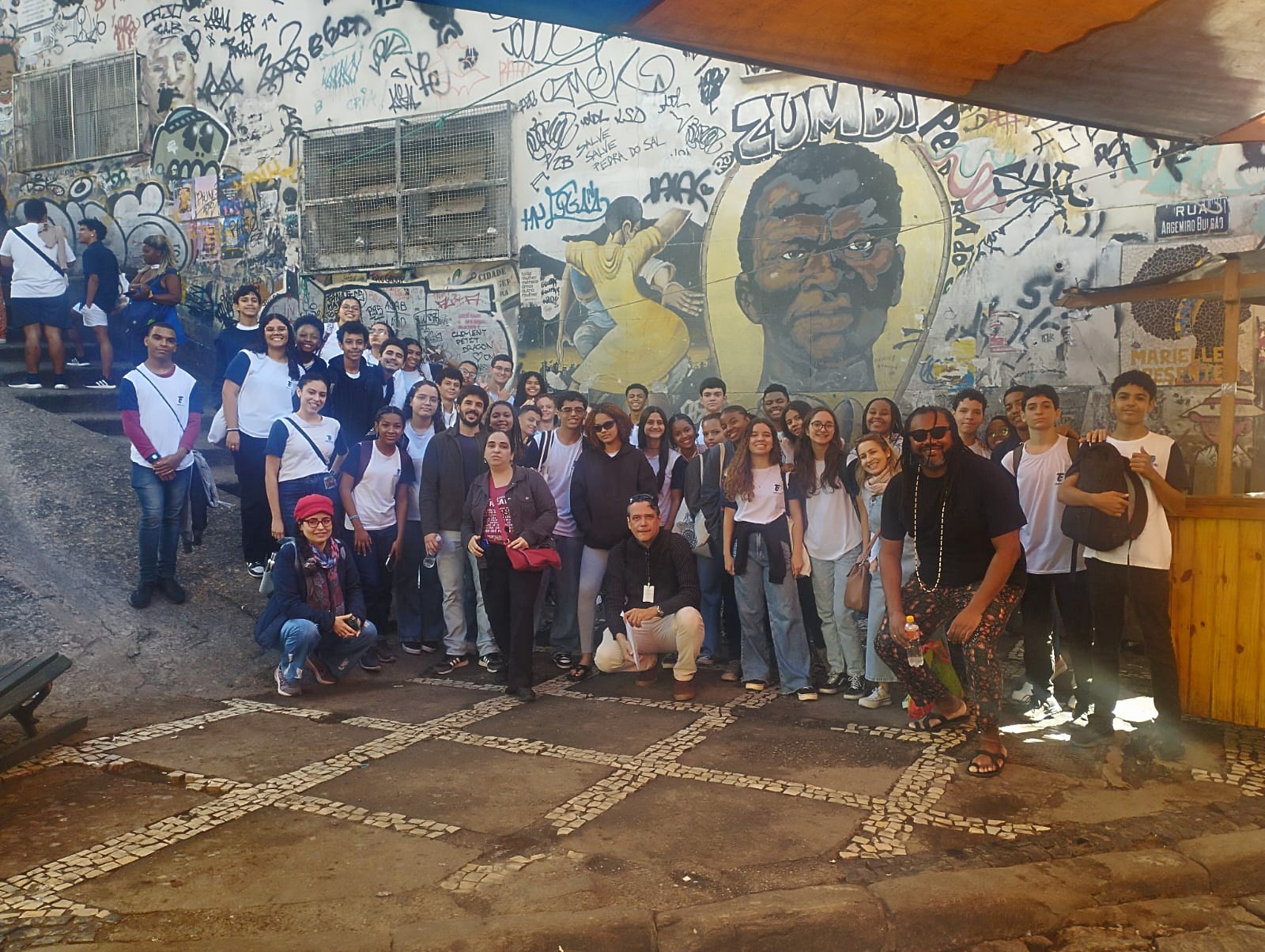 Durante a visita, os estudantes conheceram o Largo da Prainha e o monumento em homenagem a Mercedes Baptista, primeira bailarina negra do Theatro Municipal do Rio de Janeiro. Também estiveram na Pedra do Sal, ponto tradicional de resistência cultural e religiosa, onde foi destacada a memória de Tia Ciata, figura central na consolidação do samba e das religiosidades afro-brasileiras.