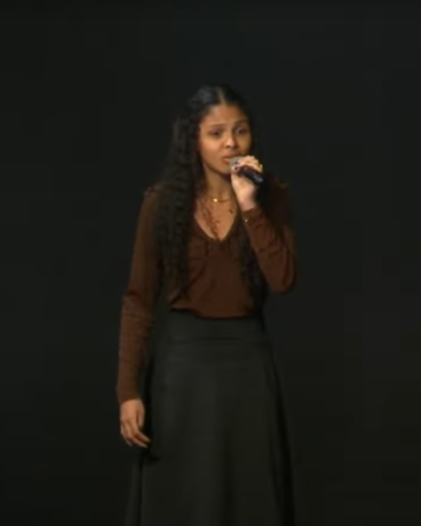 A aluna do Cefet/RJ Unidade Maracanã Gabriele Sofia durante sua apresentação no Slam do Estudante (reprodução: vídeo ABL)