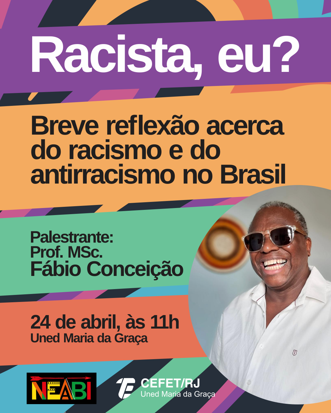 No dia 24 de abril, às 11h, o Núcleo de Estudos Afro-Brasileiros e Indígenas (NEABI) da Uned Maria da Graça vai promover a palestra “Racista, eu? Breve reflexão acerca do racismo e do antirracismo no Brasil”. O evento marca a abertura das atividades públicas do núcleo em 2025 e contará com a participação do professor Fábio Conceição.