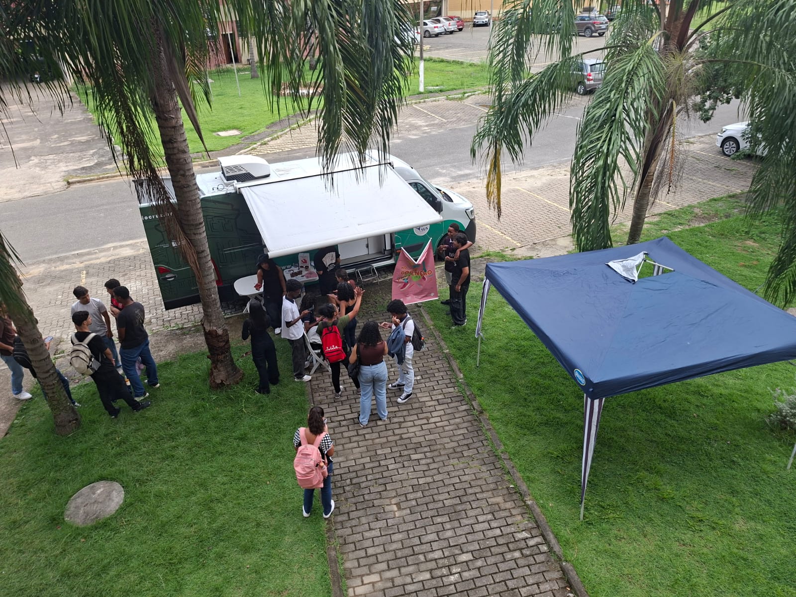 Unidade móvel de saúde estacionada na Uned Nova Iguaçu ofereceu gratuitamente serviços de prevenção e cuidado à comunidade estudantil.