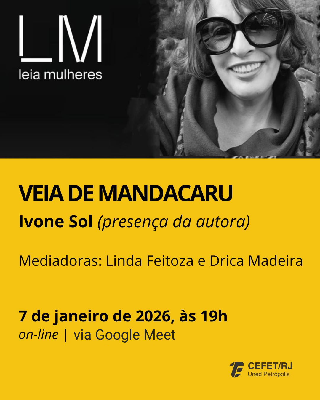O encontro, que contará com a mediação de Linda Feitoza e Drica Madeira, será on-line no dia 7 de janeiro, a partir das 19h, pelo Google Meet. Os interessados em participar devem solicitar o link do evento por meio das redes sociais – Leia Mulheres Petrópolis, no Instagram, e grupo Leia Mulheres Petrópolis-RJ, no Facebook.