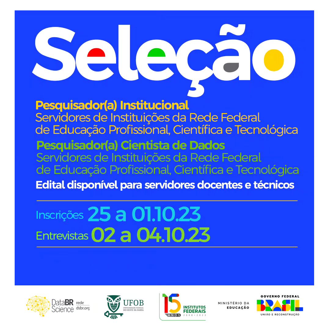 A Rede Data Science BR (DSBR) abriu inscrições, na última segunda-feira (25), para o Edital de Chamamento nº 02/2023, que irá selecionar pesquisadores da Rede Federal de Educação Profissional, Científica e Tecnológica. O chamamento tem como objetivo a seleção de pesquisadores para compor a equipe do projeto “Plataforma Nilo Peçanha (PNP): democratização de dados da Rede Federal de Educação Profissional, Científica e Tecnológica”.