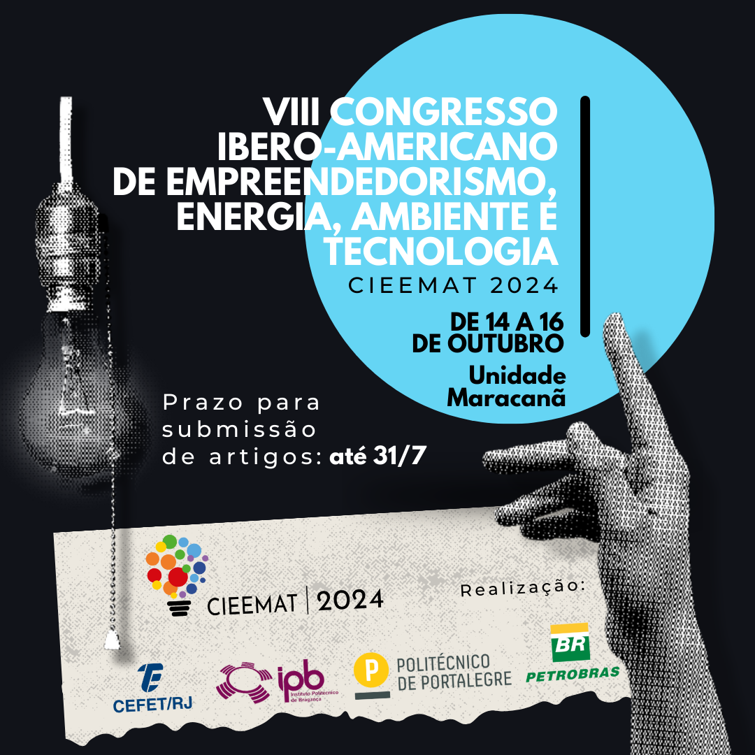 Entre os dias 14 e 16 de outubro, o Cefet/RJ realizará o VIII Congresso Ibero-Americano de Empreendedorismo, Energia, Ambiente e Tecnologia (CIEEMAT 2024), na Unidade Maracanã. O evento tem como tema central a “Transição Energética” e é organizado em parceria com o Instituto Politécnico de Bragança (IPB), o Instituto Politécnico de Portalegre (IPPortalegre) e a Petrobras. A chamada para submissão de artigos já foi publicada e o prazo para inscrever trabalhos termina em 31 de julho.