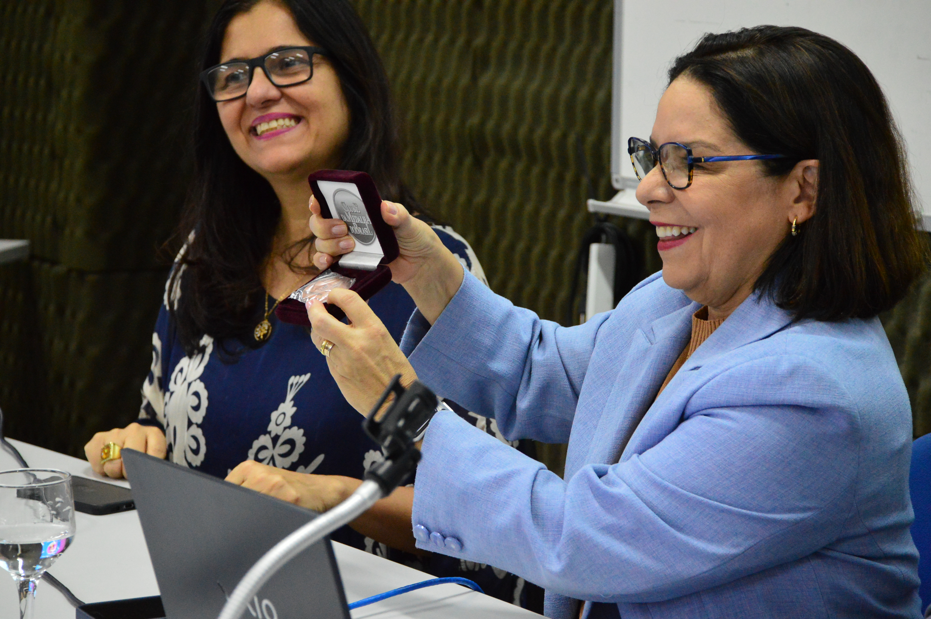 Na abertura da aula inaugural, Denise Pires de Carvalho foi homenageada com a medalha do centenário do Cefet/RJ, cunhada pela Casa da Moeda, em reconhecimento à sua trajetória profissional e à sua contribuição para a pesquisa e a ciência