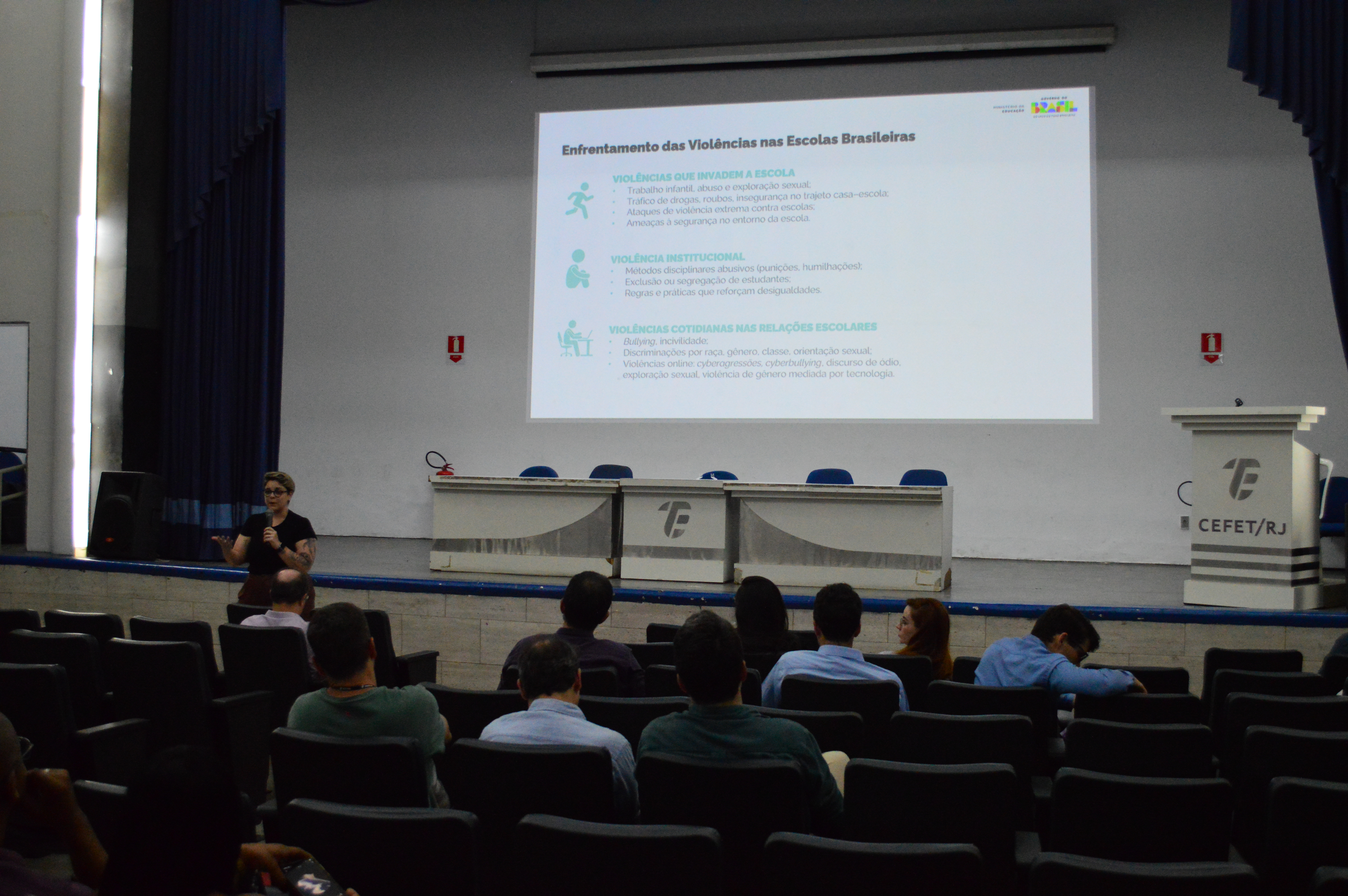 A psicóloga do MEC, Ariel Pontes, apresentou o Programa Escola que Protege, que busca ampliar a capacidade das escolas de prevenção e resposta às situações de risco
