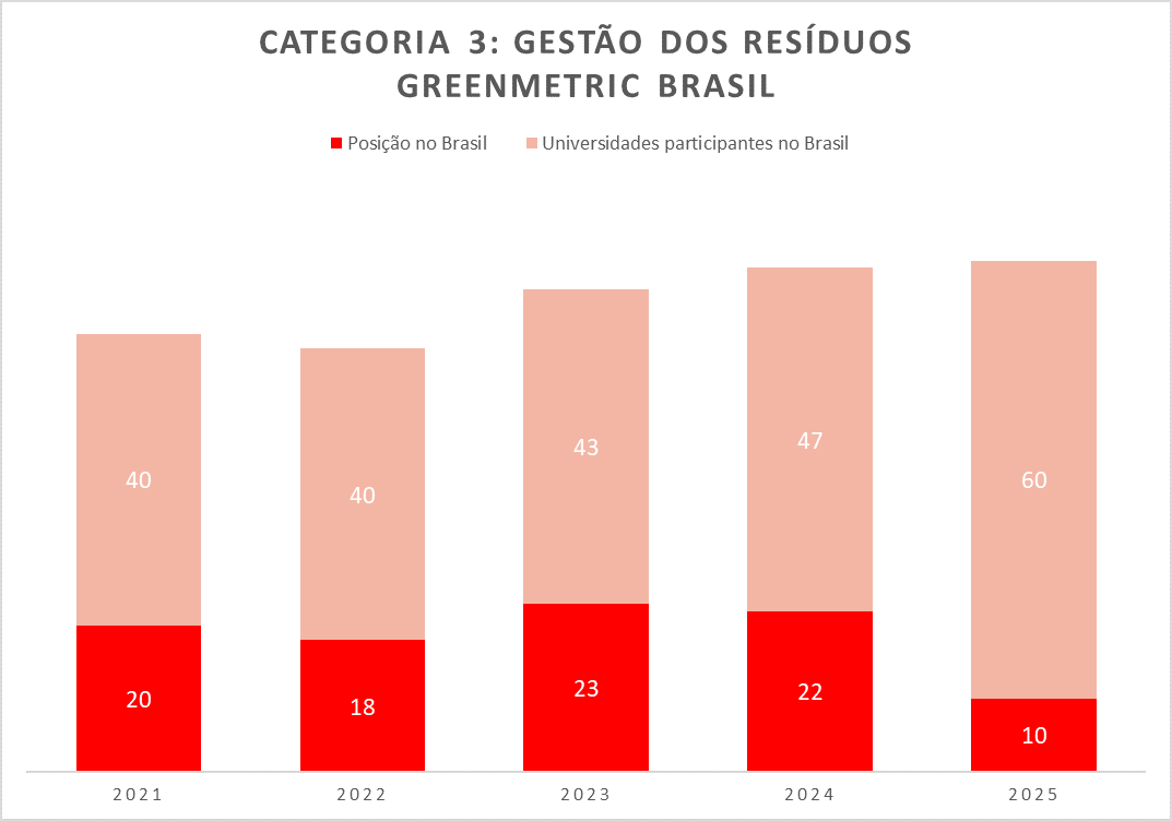 Figura 6: Ranking do Cefet/RJ com as Universidades participantes do Brasil no GreenMetric – Categoria 3: Resíduos
