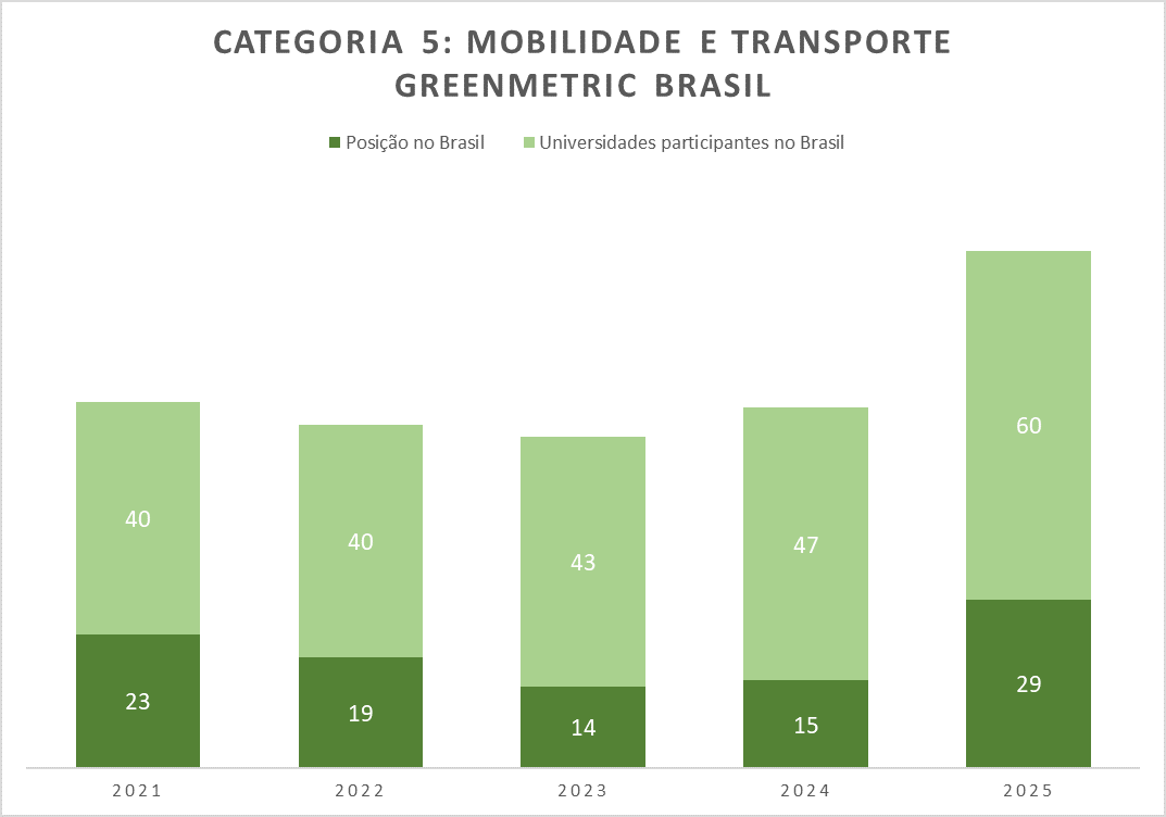 Figura 8: Ranking do Cefet/RJ com as Universidades participantes do Brasil no GreenMetric – Categoria 5: Mobilidade e Transporte