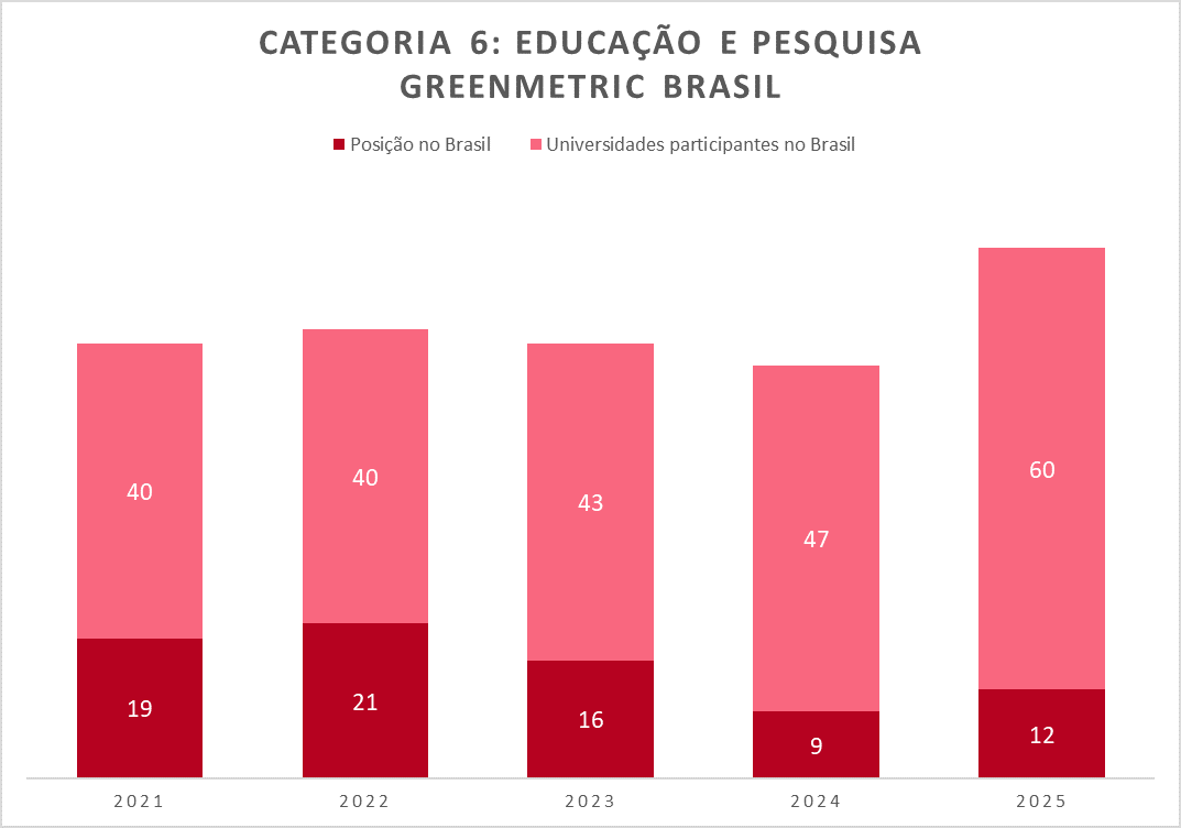 Figura 9: Ranking do Cefet/RJ com as Universidades participantes do Brasil no GreenMetric – Categoria 6: Educação e Pesquisa