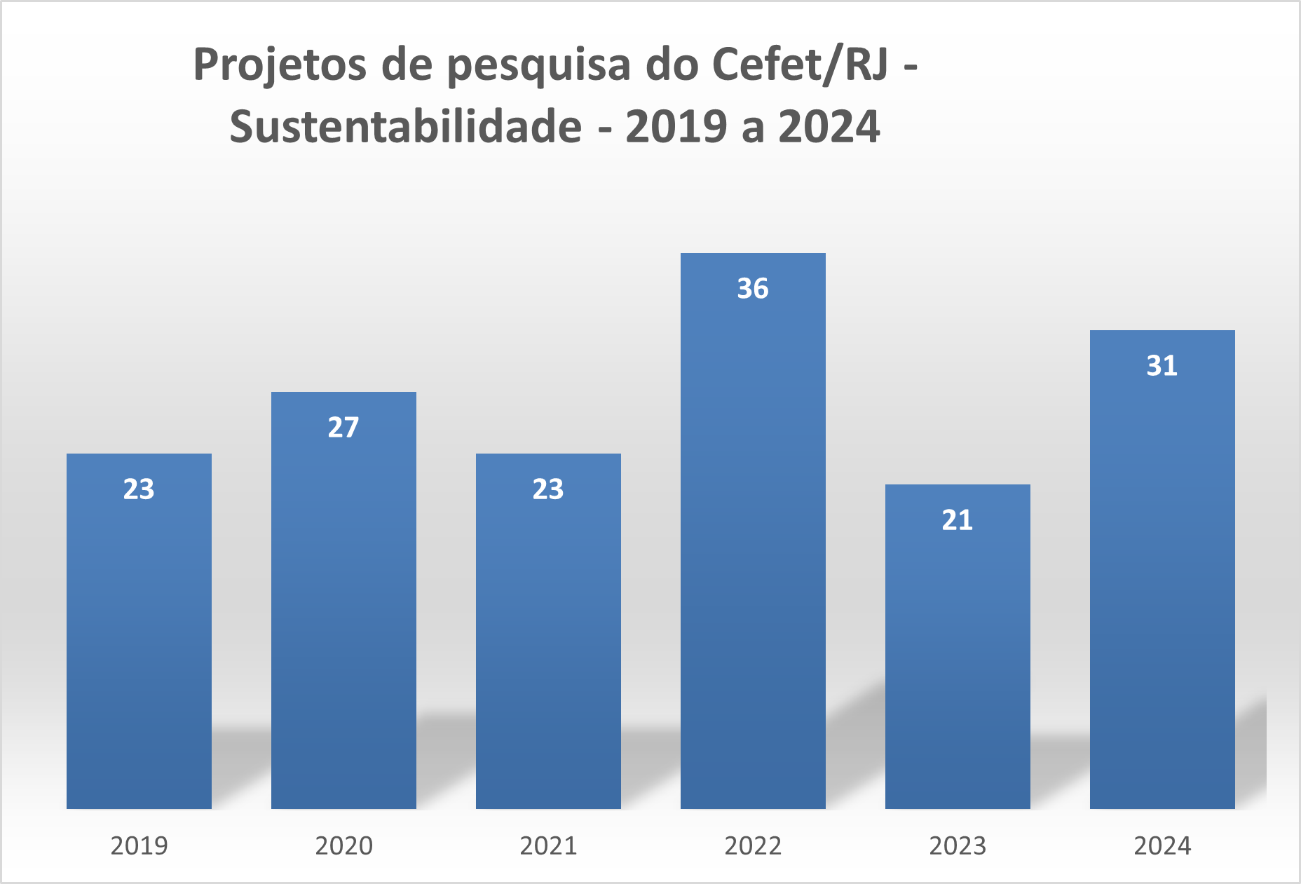 No gráfico 1, a seguir, durante o período de 2019 a 2024, verifica-se o desenvolvimento de projetos de pesquisa, do tipo iniciação científica, que foram coordenados por professores dos campi do Cefet/RJ e estão relacionados à temática da sustentabilidade.