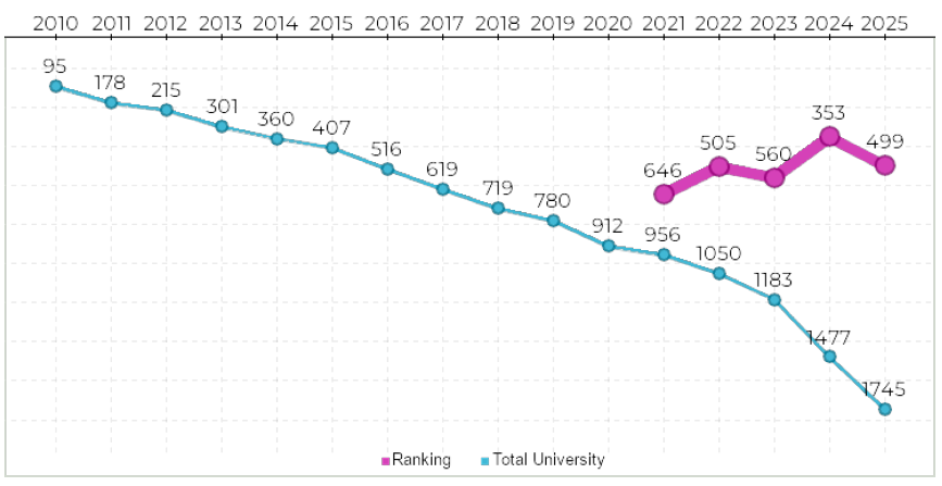 A Universitas Indonesia (UI) lançou, em 2010, a iniciativa de ranqueamento universitário global que posteriormente passou a ser conhecida como UI GreenMetric World University Rankings, criada para avaliar os esforços de sustentabilidade dos campi ao redor do mundo. Na edição inaugural, participaram 95 universidades de 35 países — sendo 18 das Américas, 35 da Europa, 40 da Ásia e 2 da Austrália. Ao longo dos anos, o número de instituições cresceu significativamente: em 2021, foram 956 instituições de ensino superior de mais de 84 países; em 2022, o total subiu para 1050 instituições; e, em 2023, alcançou 1183 participantes. Em 2024, reuniu 1477 instituições de 95 países. E para o ano de 2025, o número de participantes aumentou para 1745 universidades, de 105 países participantes, consolidando o UI GreenMetric como uma das principais referências internacionais em sustentabilidade universitária.